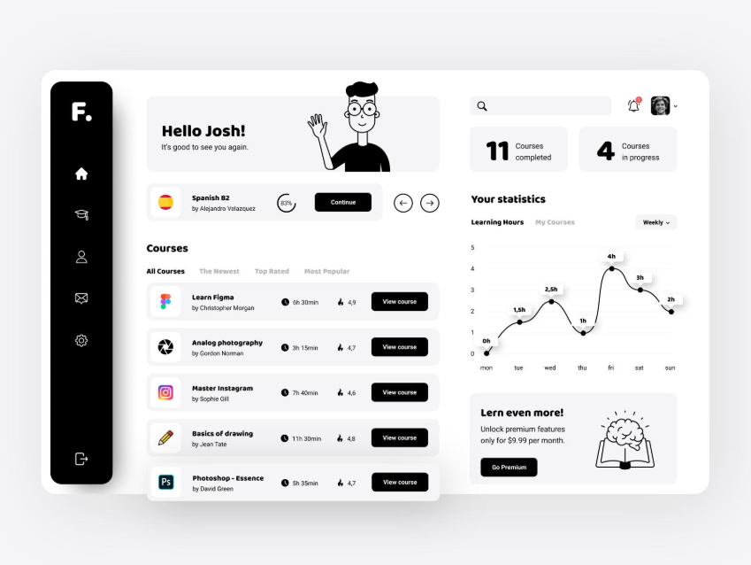 Niezależnie od tego, czy dopiero zaczynasz, czy rozwijasz już swoje kompetencje, znajdziesz tu przestrzeń, która pomoże Ci uczyć się wygodnie, skutecznie i we własnym tempie — wszystko po to, abyś mógł się rozwijać, zdobywać nowe umiejętności i osiągać swoje cele.
